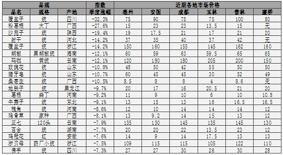 3. 中藥材品種指數(shù)、價(jià)格漲跌分析