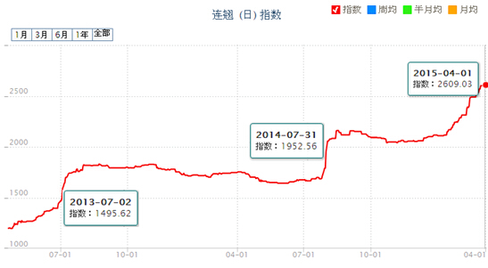 根據(jù)1-3月的“新華經(jīng)參康美中藥材價(jià)格指數(shù)”的具體走勢(shì)可見,指數(shù)曲線呈現(xiàn)先漲后水平震蕩接著繼續(xù)上漲的趨勢(shì),而且走勢(shì)比較平緩的時(shí)間段恰巧春節(jié)前后,各大藥材市場(chǎng)陸續(xù)關(guān)門閉市休整,藥材交易比較冷清,所以相對(duì)價(jià)格波動(dòng)幅度較小與市場(chǎng)行情基本吻合,另外值得關(guān)注的是3月份以來(lái)指數(shù)持續(xù)上漲中,雖然每天漲幅不大,但總體上漲勢(shì)頭依然迅猛。2015年第一季度指數(shù)走勢(shì)如圖1所示。