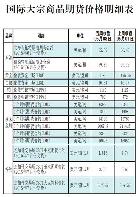 國際大宗商品期貨價格明細(xì)表[2015-5-11]