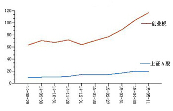 另一方面,單邊市場(chǎng)也是導(dǎo)致創(chuàng)業(yè)板估值不斷泡沫化的原因,目前,新基金正在大量的成立,百億元規(guī)模的基金也開(kāi)始出現(xiàn),這使得基金經(jīng)理手中“彈藥”格外充足,在缺乏有力做空平衡工具的情況下,市場(chǎng)只能單邊上漲。WIND統(tǒng)計(jì)數(shù)據(jù)顯示,2015年3月,共有63只新基金發(fā)行,發(fā)行份額高達(dá)1795億份,到了4月份,新成立的基金達(dá)到了75只,發(fā)行份額搞到2193億份,而在2014年同期,這個(gè)數(shù)字只有25只和178億份。
