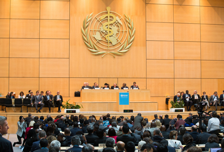 第68屆世界衛(wèi)生大會18日在日內(nèi)瓦萬國宮揭幕,來自世界衛(wèi)生組織194個成員的3000余名代表將重點討論西非埃博拉疫情的教訓(xùn)、2015年后可持續(xù)發(fā)展目標、癌癥防控等25項技術(shù)議題,涉及批準世衛(wèi)組織2016年及2017年工作預(yù)算、世衛(wèi)改革等28項行政管理議題,預(yù)計通過抗生素耐藥性全球行動計劃、空氣污染防控等17項決議或決定。圖為第68屆世界衛(wèi)生大會現(xiàn)場。