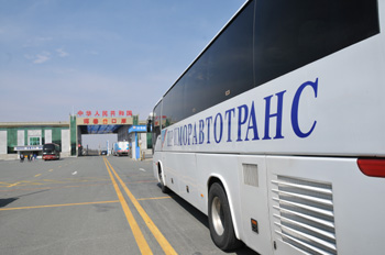 | 一輛俄羅斯客車(chē)駛?cè)氍q春口岸 |
