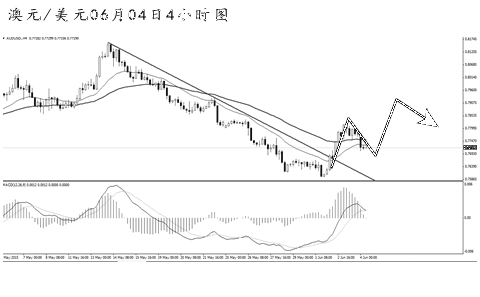 ▲澳元兌美元沖高后小幅回落調(diào)整。從日線圖上看,MACD尚未擺脫空頭動能充盈的階段,低位盤整的走勢沒有發(fā)生改變。再看4小時圖,匯價連續(xù)強力上攻,迅速將均線系統(tǒng)的壓制位升破,上方明顯的阻力在0.7840。短線澳元的主趨勢頻繁轉(zhuǎn)換,目前可關(guān)注0.7665的道氏點支撐,澳元只要不跌破此位置,后市仍有延續(xù)反彈的希望。