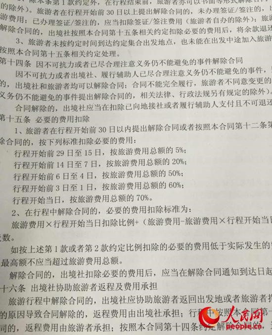 圖為同程網(wǎng)提供的團(tuán)隊(duì)出境旅游合同。