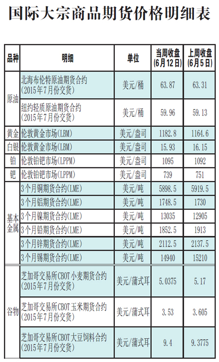 國際大宗商品期貨價格明細表[2015-6-15]