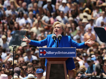 6月13日,宣布參加2016年美國(guó)總統(tǒng)競(jìng)選的民主黨人希拉里·克林頓在美國(guó)紐約羅斯福島舉行首場(chǎng)競(jìng)選集會(huì)。