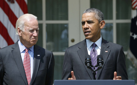 7月1日,在美國華盛頓,美國總統(tǒng)奧巴馬(右)在白宮玫瑰園發(fā)表聲明。