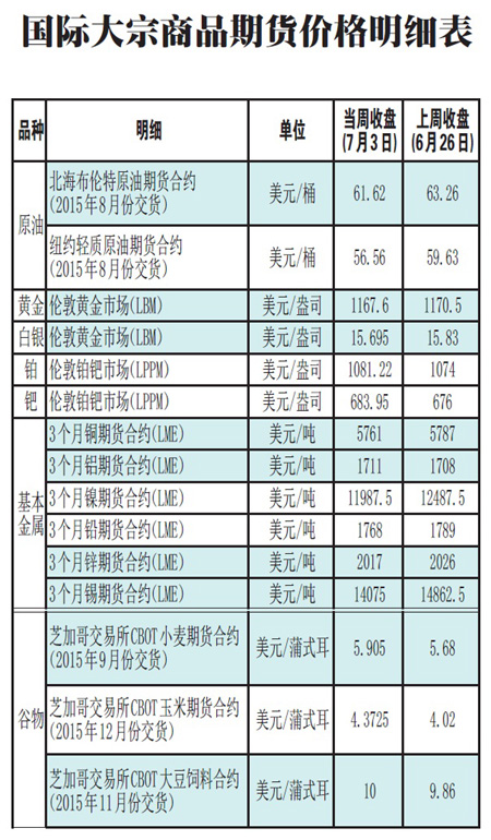 國際大宗商品期貨價格明細表[2015-7-6]