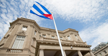 按照美國與古巴先前達成的協(xié)議,兩國在20日零時過后正式恢復(fù)外交關(guān)系。古巴駐美國大使館20日在美國首都華盛頓舉行升旗開館儀式;同一天,美國駐古巴利益代表處正式升級為使館。