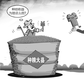 “糧食主銷(xiāo)區(qū)大量發(fā)展工業(yè),而主產(chǎn)縣則因?yàn)樽ゼZ食失去了太多發(fā)展機(jī)會(huì)。用一句話概括就是‘別人吃飯,我們貼錢(qián)?!币晃皇茉L副縣長(zhǎng)這樣感慨。為了穩(wěn)住糧食面積和產(chǎn)量,這些產(chǎn)糧大縣每年一到春耕、“雙搶”時(shí)節(jié),就會(huì)出現(xiàn)田里的干部比農(nóng)民還多的景象。政府不僅要多次發(fā)文敦促各鄉(xiāng)鎮(zhèn)落實(shí)任務(wù),甚至一些干部還要把農(nóng)民拋荒不愿種的地流轉(zhuǎn)過(guò)來(lái)自己種?!叭绻淹度爰Z食生產(chǎn)的錢(qián)集中起來(lái)搞一兩個(gè)工業(yè)企業(yè),最多三年時(shí)間就賺回來(lái)了。”