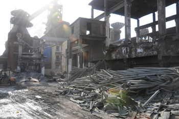 圖為河北武安烘熔鋼鐵公司一座420立方米高爐被拆除后的遺址。資料照片 |