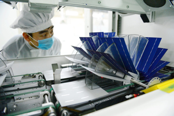 中國物流與采購聯(lián)合會、國家統(tǒng)計局服務(wù)業(yè)調(diào)查中心近日發(fā)布的2016年2月中國制造業(yè)采購經(jīng)理指數(shù)(PMI)為49.0%,比上月下降0.4個百分點。圖為河北保定英利綠色能源控股有限公司的員工在車間生產(chǎn)線上工作。 記者 朱旭東/攝