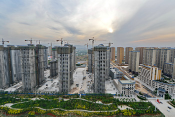 河北省石家莊市西二環(huán)沿線的商品住宅樓盤。 新華社記者 牟宇/攝? |