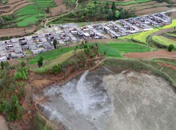 這是記者近日拍攝的甘肅省隴南市徽縣江洛鎮(zhèn)劉壩村一尾礦庫。這個尾礦庫下方除了有70、80戶居民外,還有1所學校。根據(jù)統(tǒng)計,隴南全市“頭頂庫”下面集中著22個村和居民區(qū),31座選礦廠,2所學校和2座炸藥庫。近年來,當?shù)匚驳V庫陸續(xù)發(fā)生險情,警訊不斷,隱患重重。記者 周華/攝? |