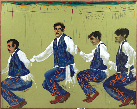阿爾多·蒙迪諾和薩爾沃作為“貧窮藝術(shù)”的創(chuàng)立者,在形成“貧窮藝術(shù)”之后,他們走出了不同的藝術(shù)路徑。這兩位藝術(shù)家都發(fā)展出一種挑釁的、顛覆的同時(shí)帶點(diǎn)憂傷、懷舊又幾乎不合時(shí)宜的“新風(fēng)格主義”繪畫(huà),他們的畫(huà)作既神秘又晦澀。阿爾多·蒙迪諾將他的敘事、模仿繪畫(huà)與其他諸如雕塑、物件和裝置的媒介相結(jié)合,在他個(gè)人的詩(shī)意世界里,引入文化、歷史和文字的指涉,以此創(chuàng)造出某種戲劇性、諷刺的文化景象,反映出猶太人歷史、東方民間傳說(shuō)和土耳其文化。而薩爾沃則將興趣點(diǎn)放在14世紀(jì)和15世紀(jì)的意大利繪畫(huà)上,重新詮釋一些大師,如20年代早期、形而上藝術(shù)階段以后的卡羅·卡拉。