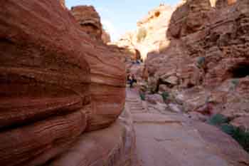 要走過3公里的峽谷才能進入真正的佩特拉古城,沿著山體往里走,沿途巖石色彩漸漸變化,粉紅色慢慢加重,接近玫瑰紅。而道路上一群群畫著煙熏裝扮,像酷似杰克船長的當?shù)啬腥蓑T著駱駝從你身邊穿行而過,散發(fā)著典型的阿拉伯風情。