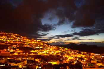 我就站在那山坡上,看太陽慢慢,慢慢落下;看月亮漸漸,漸漸升起。滿山的房屋點起了燈光,沿途路上的燈也全部打開,一層一層圍繞著整個山頭,照亮著整個城鎮(zhèn)。這一片燈火,談不上輝煌,但定是夢幻。我有些無法相信這是我白天看到的那個簡單的小鎮(zhèn),日月變化,似乎換了另一個世界。
