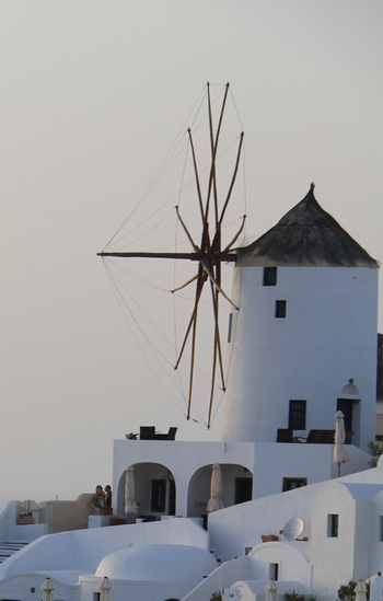Oia 在島的邊緣,傳說中能見到世界上最美的落日。我們就住在了Oia。訂房網(wǎng)站上誤打誤撞訂了個正在打特價的窯洞賓館,門把手都是黃銅的,超級復(fù)古,藍(lán)門白墻,典型到不能再典型。不過由于它“優(yōu)越”的地理位置,每天我們都得穿戴整齊再開窗,因?yàn)橘e館本身就是景色,每天山頭上都有無數(shù)的“狗仔隊(duì)”對著這里拍照,一不小心就走光了!