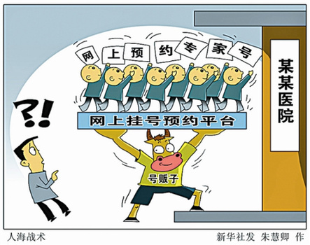 今年以來,北京衛(wèi)生部門推出“非急診全面預(yù)約”掛號(hào)改革“新政”,拉開“PK‘黃牛黨’”的序幕?!按驌籼?hào)販子、緩解‘掛號(hào)難’,最直接的辦法是豐富掛號(hào)渠道、分流號(hào)源,極力壓縮號(hào)販子倒號(hào)空間,使其無利可圖?!北本┦嗅t(yī)院管理局局長于魯明介紹,今年以來,北京22家市屬三甲醫(yī)院推出“非急診全面預(yù)約”掛號(hào)改革措施?;颊呖赏ㄟ^“京醫(yī)通”微信、自助掛號(hào)機(jī)、電話等多渠道實(shí)名預(yù)約7天內(nèi)號(hào)源。