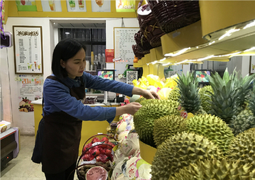 近日,梁培培在自營水果店內(nèi)為顧客挑選水果。從淮北礦業(yè)集團(tuán)離開至今,不到一年時(shí)間,梁培培的生意從當(dāng)初的一輛雪糕車變成了三個(gè)店面,月營業(yè)額20萬元。