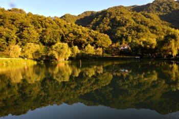 官鵝溝水秀。這里十余個大小不等、形態(tài)各異的湖泊,猶如一串綠色的珍珠鑲嵌在溝內(nèi),湖水清澈透底,隨湖底地貌高低呈不同顏色,那些倒映在湖中的古樹像一條條巨龍臥在湖底。藍天白云和青山古樹,映入湖中,使天地渾然一體,沒有界限。