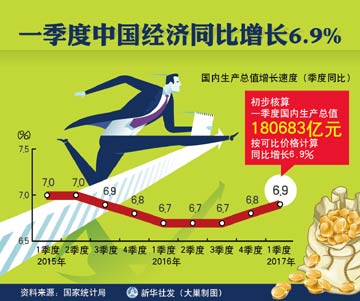 國(guó)家統(tǒng)計(jì)局17日公布了最新的國(guó)民經(jīng)濟(jì)運(yùn)行數(shù)據(jù)。數(shù)據(jù)顯示,今年一季度,國(guó)內(nèi)生產(chǎn)總值(GDP)為180683億元,按可比價(jià)格計(jì)算,同比增長(zhǎng)6.9%。從投資、工業(yè)生產(chǎn)、進(jìn)出口等多項(xiàng)數(shù)據(jù)來看,一季度增長(zhǎng)超出市場(chǎng)預(yù)期。