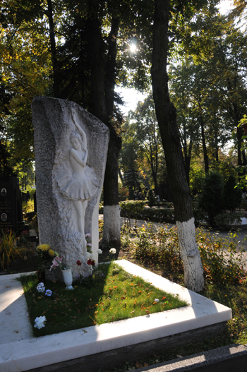 芭蕾舞藝術(shù)家烏蘭諾娃的墓碑則是由一塊通體白色大理石雕刻而成,正面有一個跳芭蕾舞的人形浮雕。只見舞者足尖輕輕點地,四肢柔韌靈動,恍惚間,這只美麗的“白天鵝”似乎從未離去,她只不過是去了一個更美的舞臺,在那里繼續(xù)向人們展示真正的美。
