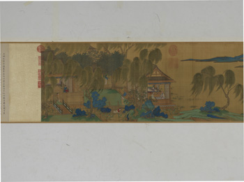 具體來看,中國古代書畫三個夜場今年共斬獲4.085億元。其中,“澄道——古代繪畫夜場”呈現(xiàn)諸多精彩繪畫名跡,共上拍35件精品,總成交額斬獲2.28億元。著錄于《石渠寶笈三編》的仇英《蓬萊仙弈圖》拍前估價2000萬元至2500萬元,當晚以1700萬元起拍,經(jīng)過多番激烈競價,最終以8165萬元成交,創(chuàng)下其個人拍賣紀錄第二高價,同時也成為此次匡時2017春拍成交價最高拍品。此件仇英《蓬萊仙弈圖》有文征明題跋與文彭題引首,為仇英青綠山水的典型畫風。“蓬萊”與“仙弈”是道教意象明顯的神仙題材,在明代皇帝崇尚道教最鼎盛的嘉靖年間,凡人可成仙的觀念已憑借《蓬萊仙弈圖》與多個摹本的傳播而深入人心,作為民間職業(yè)畫家的仇英繪制此一題材長卷,深受當時社會思想風潮的影響。此卷后來進入清宮,被《石渠寶笈三編》收錄,并鈐有“乾隆隆御覽之寶、石渠寶笈、乾隆鑒賞、三希堂精鑒璽、宜子孫、嘉慶御覽之寶、寶笈三編、宣統(tǒng)御覽之寶”等清內(nèi)府鑒賞印。