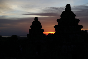 很多游客的吳哥之行從吳哥寺觀日出開(kāi)始。天才蒙蒙亮,很多來(lái)看日出的游客已經(jīng)守在吳哥寺西面南北兩個(gè)“蓮花池”旁,其中不乏裝備齊全的專業(yè)攝影師。吳哥寺日出的魅力在于它的美變幻莫測(cè),云層的變化令日出色彩絢爛,吳哥寺五座標(biāo)志性寶塔的剪影和朝霞映在蓮花池的水面,讓人分不清幻影還是真實(shí),這種穿越時(shí)空的美,攝人心魄。