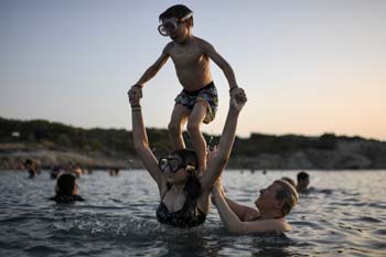 ??? 7月2日,在希臘雅典,人們在海水里納涼。新華社/法新 |