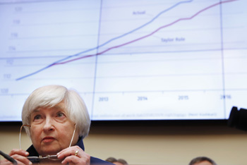 ??? 7月12日,在美國(guó)華盛頓,美國(guó)聯(lián)邦儲(chǔ)備委員會(huì)主席耶倫出席國(guó)會(huì)眾議院金融服務(wù)委員會(huì)的聽證會(huì)。耶倫12日表示,如果美國(guó)經(jīng)濟(jì)表現(xiàn)大體符合美聯(lián)儲(chǔ)預(yù)期,美聯(lián)儲(chǔ)可能今年開始執(zhí)行縮減資產(chǎn)負(fù)債表(“縮表”)計(jì)劃。新華社/美聯(lián) |