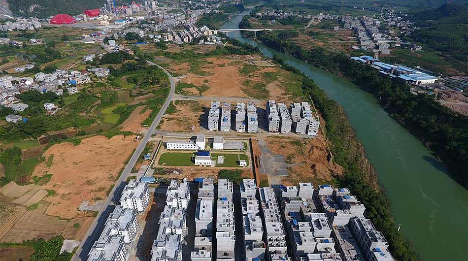 正在建設(shè)的都安紅渡扶貧移民新城(7月25日攝)。