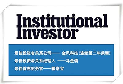 國際資本市場權(quán)威金融雜志《機(jī)構(gòu)投資者》(Institutional Investor)年度評獎(jiǎng)結(jié)果日益揭曉,金風(fēng)科技從2,500余家亞洲上市公司中脫穎而出,包攬“最佳投資者關(guān)系公司”、“最佳投資者關(guān)系經(jīng)理人”和“最佳首席財(cái)務(wù)官”三項(xiàng)大獎(jiǎng)。
