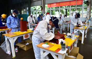 ??? 8月6日,技術(shù)工人在涂裝競(jìng)技項(xiàng)目上比拼技能。當(dāng)日,安徽合肥經(jīng)開區(qū)第二屆勞動(dòng)和技能競(jìng)賽開賽,來自轄區(qū)38家企業(yè)的86名技術(shù)工人在涂裝、釬焊、叉車項(xiàng)目上進(jìn)行競(jìng)技。記者 劉軍喜 攝 |