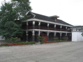 旅行者一般來此,都想到紅色圣地轉(zhuǎn)轉(zhuǎn),看看遵義會議召開的地方。遵義會議會址原為黔軍25軍第二師師長柏輝章的私人官邸,修建于30年代初。整個建筑分主樓、跨院兩個部分。主樓為中西合璧,臨街有八間鋪面房。鋪面居中有一小牌樓,檐下懸掛著毛澤東1964年11月題寫的“遵義會議會址”六個字的黑漆金匾。街面房連接主樓與跨院之間有一座青磚牌坊。牌坊上方用碎藍瓷鑲嵌著“慰廬”二字。牌坊的另一面有“慎篤”二字,遵義會議會址主樓坐北朝南,一樓一底,為曲尺形,磚木結(jié)構(gòu),歇山式屋頂,上蓋小青瓦。樓房有抱廈一圈,樓頂有一老虎窗。樓層有走廊上,可以憑眺四圍蒼翠挺拔的群山,指點昔日紅軍二占遵義時與敵軍鏖戰(zhàn)地紅花崗,插旗山、玉屏山、鳳凰山諸峰。會址主樓上下的門窗,漆板栗色,所有窗牖均鑲嵌彩色玻璃。緊挨主樓的跨院純?yōu)槟窘Y(jié)構(gòu)四合院,仍漆板栗色。
