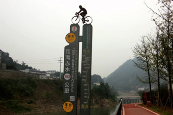 旅游公路的起點茅臺鎮(zhèn)是紅軍長征四渡赤水渡口之一。1935年1月至3月,紅軍長征經(jīng)過遵義期間,巧妙地在如今的仁懷、習(xí)水、赤水及四川境內(nèi)四渡赤水,甩開國民黨重兵圍困。沿赤水河而下的旅游公路,先后經(jīng)習(xí)水隆興鎮(zhèn)淋灘、土城、赤水元厚等主要渡口。公路沿線還建有四渡赤水紀念館(土城)、習(xí)水女紅軍紀念館、土城青杠坡戰(zhàn)斗遺址等紅色景點。在土城街上,每一戶人家都掛著一塊牌子:1935年紅軍駐地。赤水河谷旅游公路共分兩部分,一是公路主線,另一是自行車道、人行步道慢行系統(tǒng)。用紅色瀝青鋪成的山地自行車道,旁邊就是黑色瀝青鋪成的汽車道。到這里旅游可以開車、可以騎行、也可以走路,人車分離,既安全又愜意。公路主線全長約153公里,主線兩邊刺桐樹形成天然樹洞;自行車道、人行步道慢行系統(tǒng)全長約168公里,與赤水河相輔相成。赤水河谷旅游公路全線上的12個驛站,目前有500多輛自行車,整體來說車況都還不錯,綠色的為山地車,后面藍白相間的為休閑車。在任一驛站都能租賃到自行車,只需拿出手機用支付寶或者微信掃描自行車上的二維碼,填寫手機號機注冊一個賬號,注冊成功后繳納200元押金即可取走自行車,按小時收費,10元/小時。需要注意的是,每個人只能使用自己的賬號租賃一輛自行車。不想騎了,可以隨意在其中一個驛站把自行車還回去,非常人性化。驛站之中最有意思的為仁懷茅臺、習(xí)水土城和赤水復(fù)興的3個驛站,不可錯過。它們沿著赤水河一路前行,先后經(jīng)過仁懷市茅臺四渡赤水紀念碑、 國酒博物館、茅臺古鎮(zhèn)、美酒河;習(xí)水縣二郎灘戰(zhàn)斗遺址、四渡赤水紀念館、千年土城古鎮(zhèn);赤水市赤水大瀑布、燕子巖、竹海等各大景區(qū)。