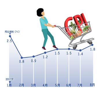 統(tǒng)計局數(shù)據(jù)顯示,8月份,CPI環(huán)比上漲0.4%,同比上漲1.8%;PPI環(huán)比上漲0.9%,同比上漲6.3%。
