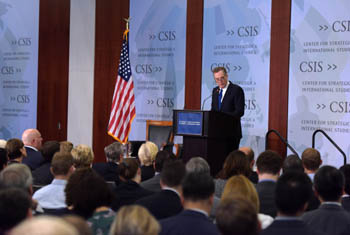 ??? 9月18日,美國貿易代表羅伯特·萊特希澤在華盛頓智庫戰(zhàn)略與國際問題研究中心發(fā)表演講。萊特希澤說,減少貿易逆差是特朗普政府貿易政策的優(yōu)先考慮事項,美國將尋求對等的貿易關系。這一表態(tài)加深了觀察人士對美國和他國貿易沖突加劇的擔憂。記者 殷博古 攝 |