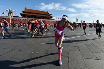 ??? 9月17日,參賽選手從天安門前經過。當日,2017北京馬拉松賽在北京天安門廣場開跑。記者 鞠煥宗 攝 |