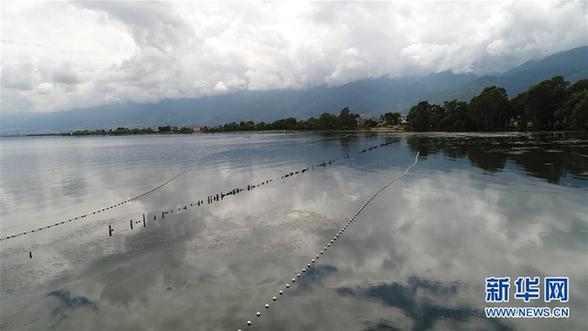 9月7日拍攝的云南省大理市古生村建在洱海上的攔污設(shè)施。新華社記者 金立旺 攝