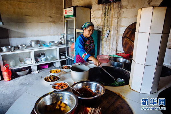 湖南湘西州花垣縣雙龍鎮(zhèn)十八洞村村民龍興花在自家的農(nóng)家樂為客人準備飯菜(9月7日攝)。 新華社記者 朱煒 攝