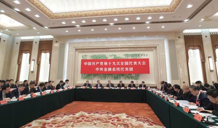 10月19日,十九大部分代表團討論向中外記者開放。這是中央金融系統(tǒng)代表團在討論。新華社記者 陳建力/攝
