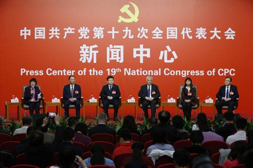 10月20日,中國(guó)共產(chǎn)黨第十九次全國(guó)代表大會(huì)新聞中心舉行主題為“實(shí)施創(chuàng)新驅(qū)動(dòng)發(fā)展戰(zhàn)略”的集體采訪活動(dòng)??萍疾奎h組書(shū)記、副部長(zhǎng)王志剛,中國(guó)科學(xué)院遺傳與發(fā)育生物學(xué)研究所研究員、分子系統(tǒng)生物學(xué)研究中心主任王秀杰,浪潮集團(tuán)首席科學(xué)家、中國(guó)工程院院士王恩東,陜西省委科技工委書(shū)記、科技廳廳長(zhǎng)盧建軍,南昌大學(xué)副校長(zhǎng)江風(fēng)益接受采訪。新華社記者 沈伯韓 攝
