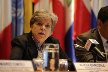 ??? 聯(lián)合國(guó)拉丁美洲和加勒比經(jīng)濟(jì)委員會(huì)10月30日發(fā)布報(bào)告,預(yù)計(jì)拉美和加勒比地區(qū)今年出口總額將比上年增長(zhǎng)10%,其中對(duì)中國(guó)出口額將比上年增長(zhǎng)23%。圖為聯(lián)合國(guó)拉丁美洲和加勒比經(jīng)濟(jì)委員會(huì)執(zhí)行秘書(shū)巴爾塞納在新聞發(fā)布會(huì)上講話。記者 王沛 攝 |
