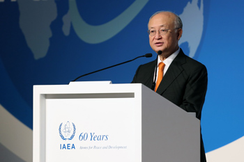??? 10月30日,在阿拉伯聯(lián)合酋長(zhǎng)國(guó)首都阿布扎比,國(guó)際原子能機(jī)構(gòu)總干事天野之彌在第四屆21世紀(jì)核能部長(zhǎng)級(jí)國(guó)際大會(huì)上講話。第四屆21世紀(jì)核能部長(zhǎng)級(jí)國(guó)際大會(huì)10月30日在阿布扎比開(kāi)幕,與會(huì)各方強(qiáng)調(diào)推動(dòng)核能安全可持續(xù)發(fā)展。新華社/法新 |