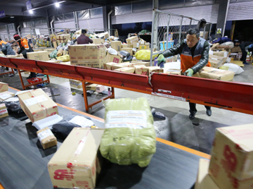 ?“雙十一”過后,各地電商快遞迎來物流高峰。圖為11月12日清晨,在山東省濰坊市一家快遞公司分揀中心,工作人員在分揀貨件。新華社發(fā)(張馳 攝) |