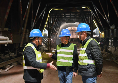 1月3日,中鐵十八局集團(tuán)公司的工程技術(shù)管理人員在墨臨高速公路文新一號隧道商議施工方案。