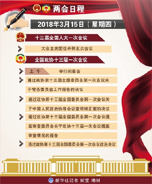 十三屆全國人大一次會議15日安排代表休息。大會主席團召開第五次會議。