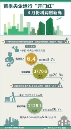 在去年創(chuàng)造五年來(lái)最好成績(jī)的基礎(chǔ)上,今年一季度中央企業(yè)保持穩(wěn)中向好發(fā)展態(tài)勢(shì),經(jīng)濟(jì)運(yùn)行開局良好,實(shí)現(xiàn)首季“開門紅”,3月份月度利潤(rùn)更是創(chuàng)歷史新高。