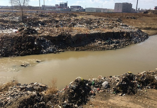 4月7日,天義鎮(zhèn)崗崗營(yíng)子村,西遼河上游的老哈河從垃圾場(chǎng)中間流過(guò)。(新華社記者 王靖 攝)